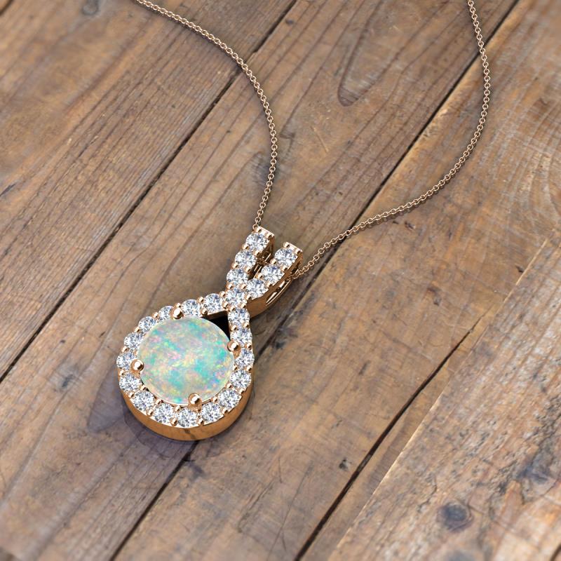 Round Opal and Diamond 0.96 ctw Womens Halo Pendant Necklace 14K Rose Gold.Included 16 Inches 14K Rose Gold Chain More Details ...