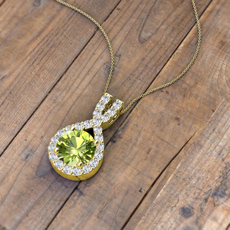 Round Peridot and Diamond 1.16 ctw Womens Halo Pendant Necklace 14K Yellow Gold.Included 16 Inches 14K Yellow Gold Chain More Details ...