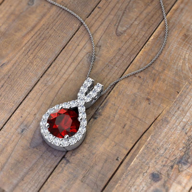 Round Red Garnet and Diamond 1.26 ctw Womens Halo Pendant Necklace 14K White Gold.Included 16 Inches 14K White Gold Chain More Details ...