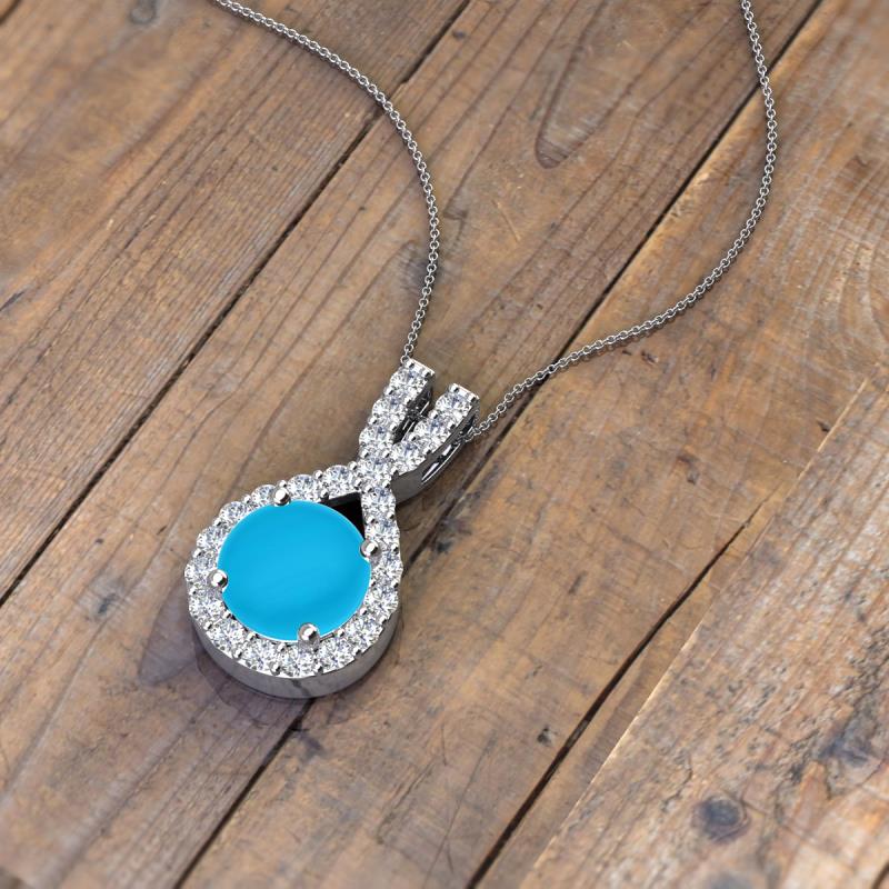 Round Turquoise and Diamond 0.98 ctw Womens Halo Pendant Necklace 14K White Gold.Included 16 Inches 14K White Gold Chain More Details ...