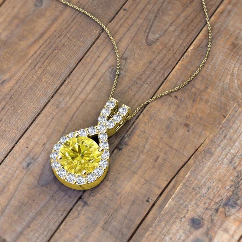 Round Yellow Diamond and White Diamond 1.16 ctw Womens Halo Pendant Necklace 14K Yellow Gold.Included 16 Inches 14K Yellow Gold Chain More Details ...