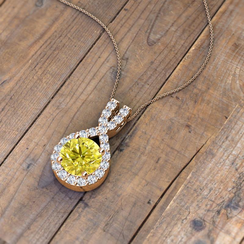 Round Yellow Diamond and White Diamond 1.16 ctw Womens Halo Pendant Necklace 14K Rose Gold.Included 16 Inches 14K Rose Gold Chain More Details ...