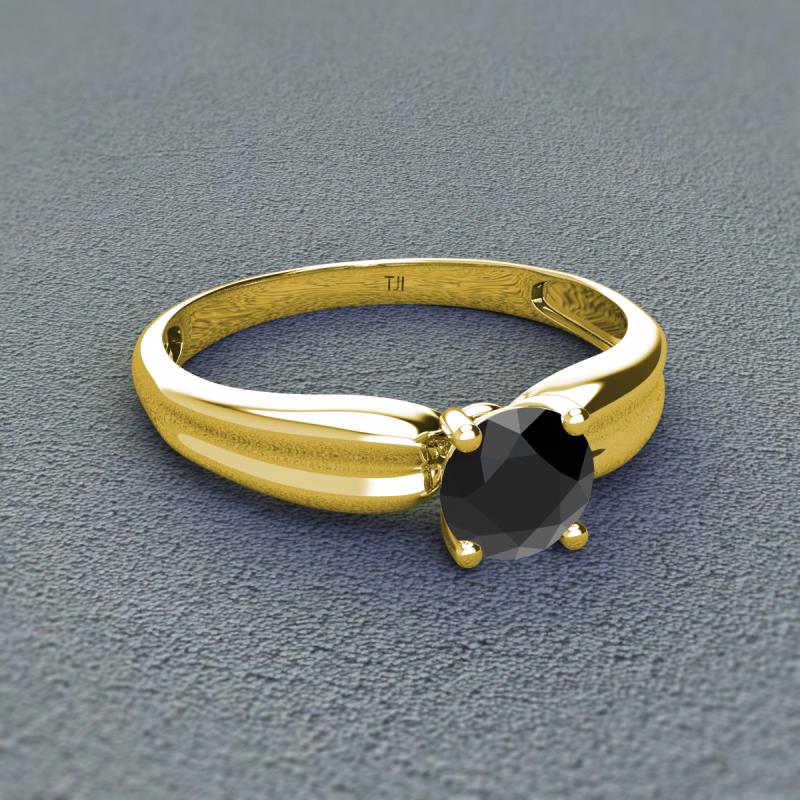 Round Black Diamond 1.00 ct Womens Solitaire Engagement Ring 18K Yellow Gold More Details ...
