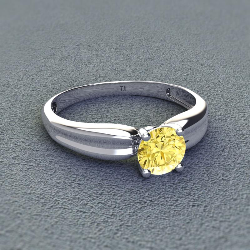 Round Lab Created Yellow Sapphire 0.95 ct Womens Solitaire Engagement Ring 14K White Gold More Details ...