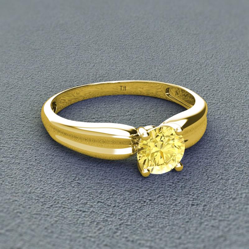 Celebrate your special day with this classic 0.95 ct Engagement Ring having a mesmorizing wide shank mounted with a single Lab Created Yellow Sapphire which will surely be in style forever.