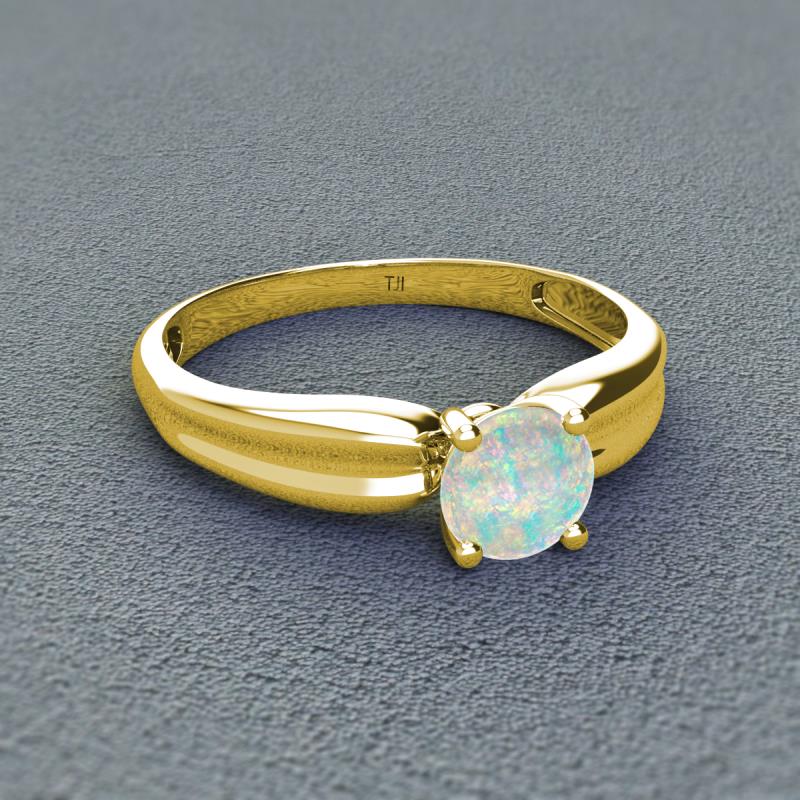 Round Opal 0.60 ct Womens Solitaire Engagement Ring 18K Yellow Gold More Details ...