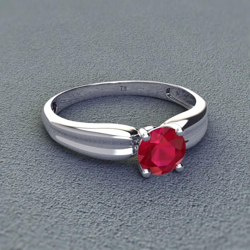 Celebrate your special day with this classic 0.95 ct Engagement Ring having a mesmorizing wide shank mounted with a single Ruby which will surely be in style forever.