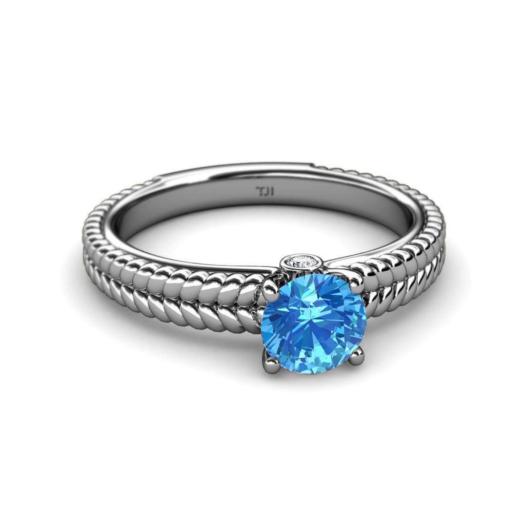 Blue Topaz and Diamond Two Tone Solitaire Plus Braided Womens Engagement Ring 1.08 ctw Platinum More Details ...