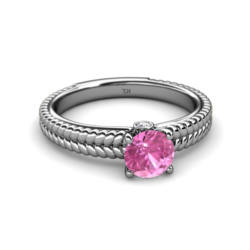 Pink Sapphire and Diamond Two Tone Solitaire Plus Braided Womens Engagement Ring 0.98 ctw 14K White Gold More Details ...