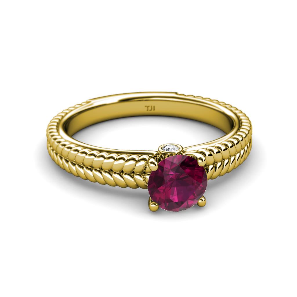 Rhodolite Garnet and Diamond Two Tone Solitaire Plus Braided Womens Engagement Ring 1.03 ctw 18K Yellow Gold More Details ...