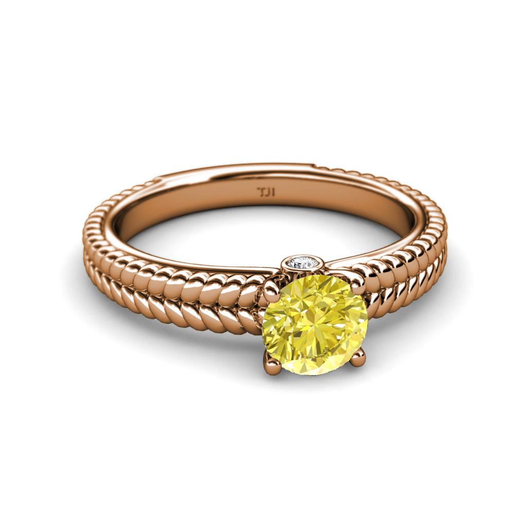 Yellow and White Diamond Solitaire Plus Braided Womens Engagement Ring 1.03 ctw 14K Rose Gold More Details ...