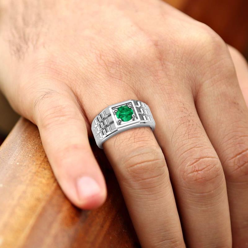 0.80 ct (6.00 mm) Emerald Geometric Square Side Design Solitaire Prong Set Men Band Platinum More Details ...