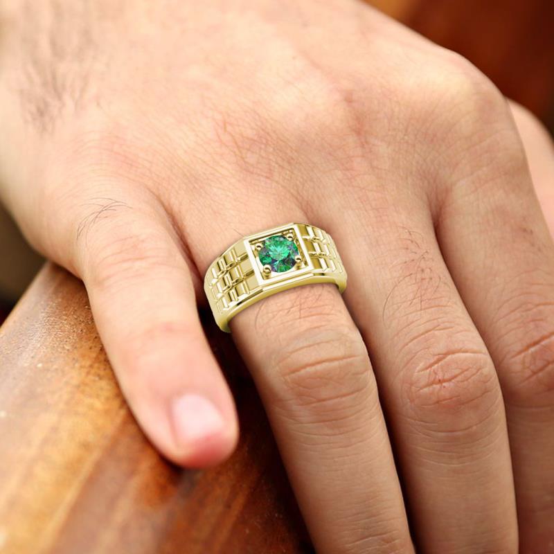 1.00 ct (6.50 mm) Lab Created Alexandrite Geometric Square Side Design Solitaire Prong Set Men Band 10K Yellow Gold More Details ...
