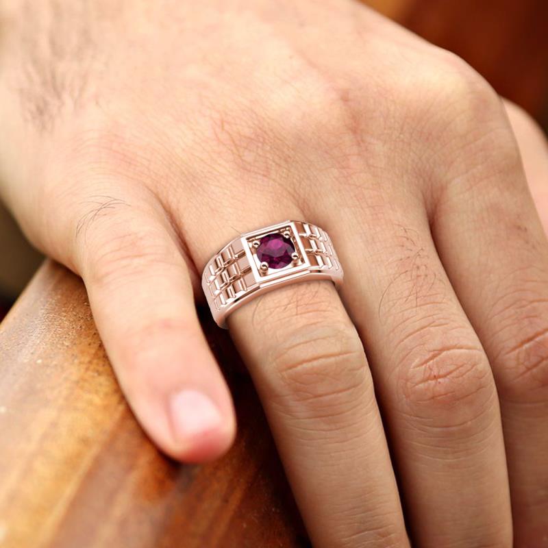 1.00 ct (6.50 mm) Rhodolite Garnet Geometric Square Side Design Solitaire Prong Set Men Band 18K Rose Gold More Details ...