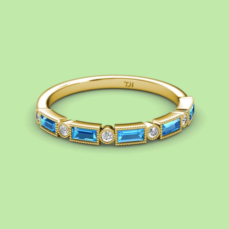 0.82 ctw Baguette Shape Diamond (4x2 mm) and Round Blue Topaz Women Milgrain Wedding Band Stackable in 18K Yellow Gold More Details ...
