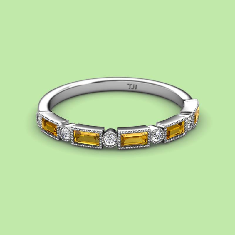 0.72 ctw Baguette Shape Citrine (4x2 mm) and Round Lab Grown Diamond Womens Milgrain Wedding Band Stackable in 18K White Gold More Details ...