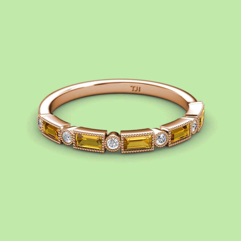 0.72 ctw Baguette Shape Diamond and Round Citrine Women Milgrain Wedding Band Stackable in 10K Rose Gold More Details ...