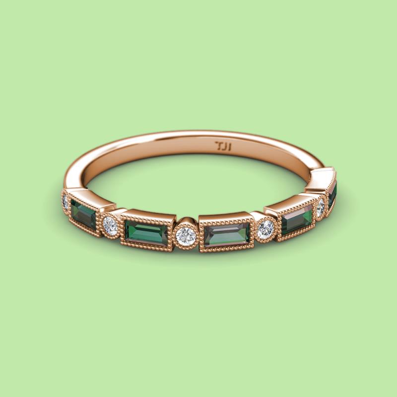 0.87 ctw Baguette Shape Created Alexandrite (4x2 mm) and Round Lab Grown Diamond Womens Milgrain Wedding Band Stackable in 18K Rose Gold More Details ...