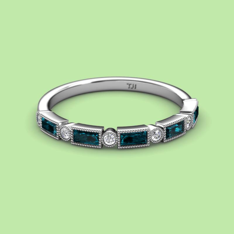 0.82 ctw Baguette Shape London Blue Topaz (4x2 mm) and Round Lab Grown Diamond Womens Milgrain Wedding Band Stackable in Platinum More Details ...