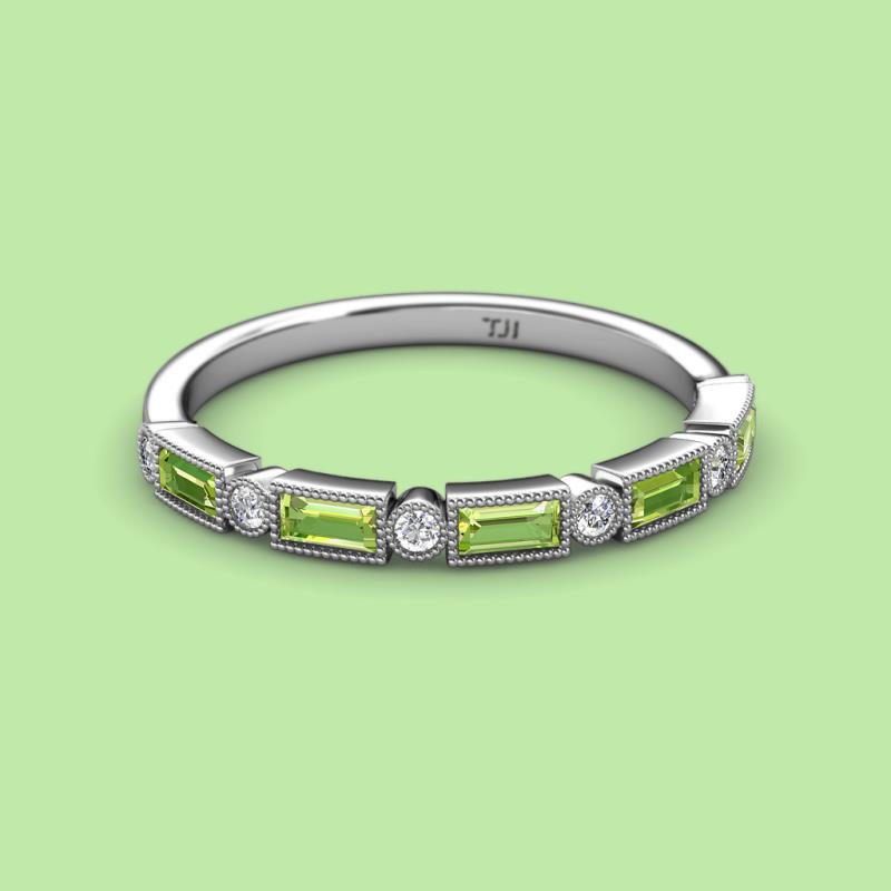 0.87 ctw Baguette Shape Diamond (4x2 mm) and Round Peridot Women Milgrain Wedding Band Stackable in 14K White Gold More Details ...