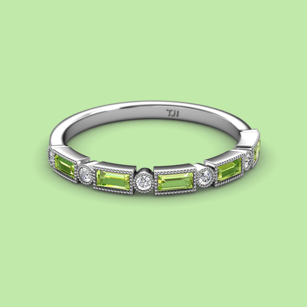 0.87 ctw Baguette Shape Diamond and Round Peridot Women Milgrain Wedding Band Stackable in 10K White Gold More Details ...