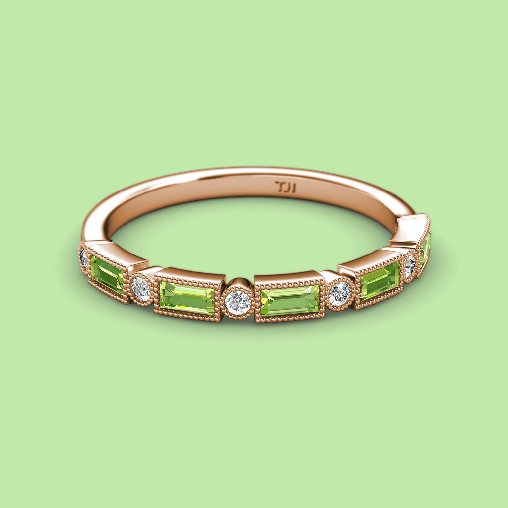 0.87 ctw Baguette Shape Diamond and Round Peridot Women Milgrain Wedding Band Stackable in 10K Rose Gold More Details ...