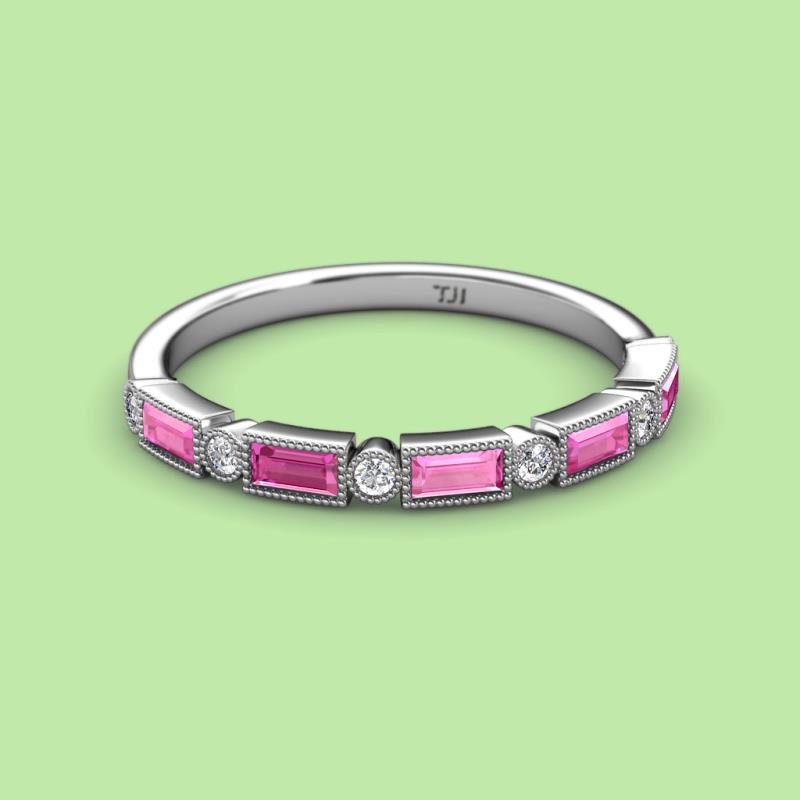 0.87 ctw Baguette Shape Pink Sapphire (4x2 mm) and Round Lab Grown Diamond Womens Milgrain Wedding Band Stackable in Platinum More Details ...