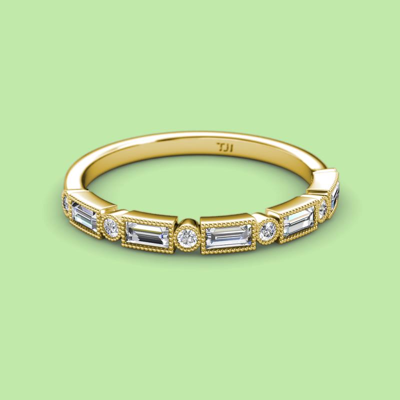 0.67 ctw Natural Baguette Shape Diamond (4x2 mm) and Round Diamond Womens Milgrain Wedding Band Stackable in 10K Yellow Gold More Details ...