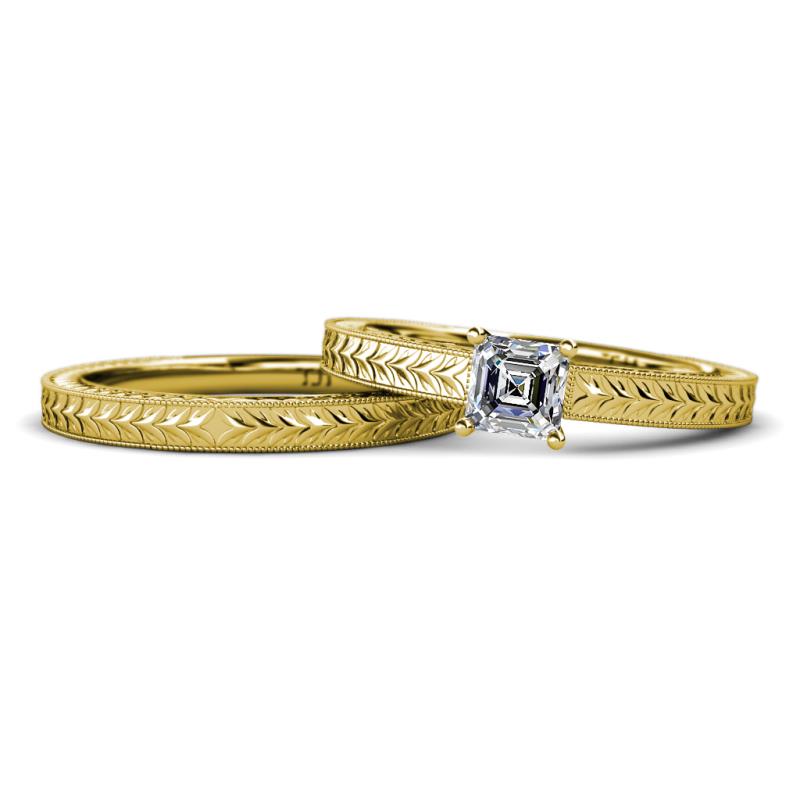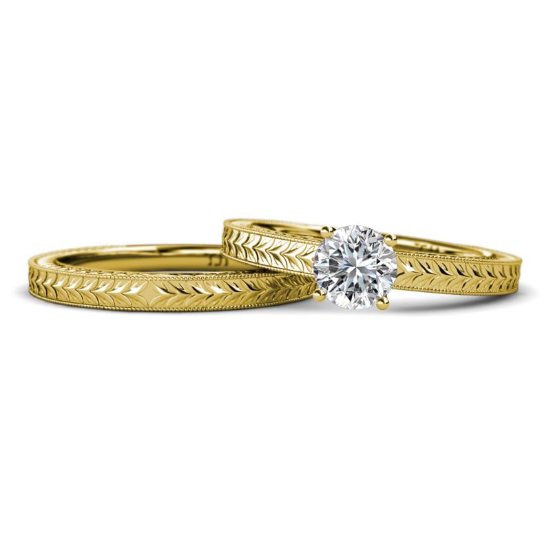 Four Prong Engraved Filgree & Milgrain Work Semi Mount Solitaire Ring Setting & Matching Band 14K Yellow Gold More Details ...