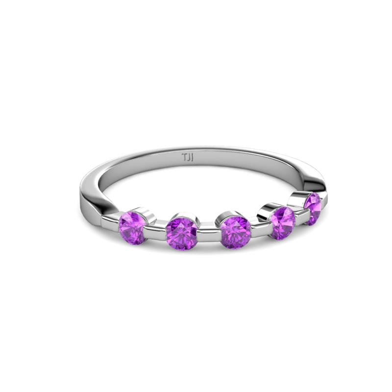 Round Amethyst 3/8 ctw 5 Stone Bar Set Womens Wedding Band Stackable 10K White Gold More Details ...