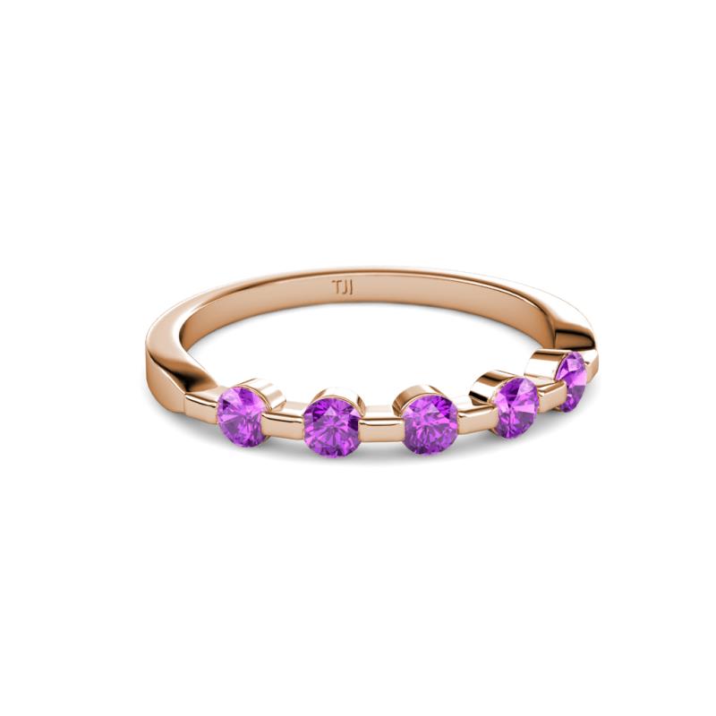 Round Amethyst 3/8 ctw 5 Stone Bar Set Womens Wedding Band Stackable 10K Rose Gold More Details ...