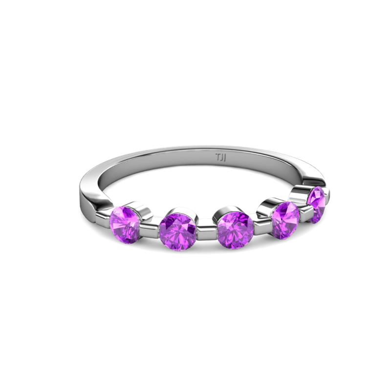 Round Amethyst 3/4 ctw 5 Stone Bar Set Womens Wedding Band Stackable 10K White Gold More Details ...