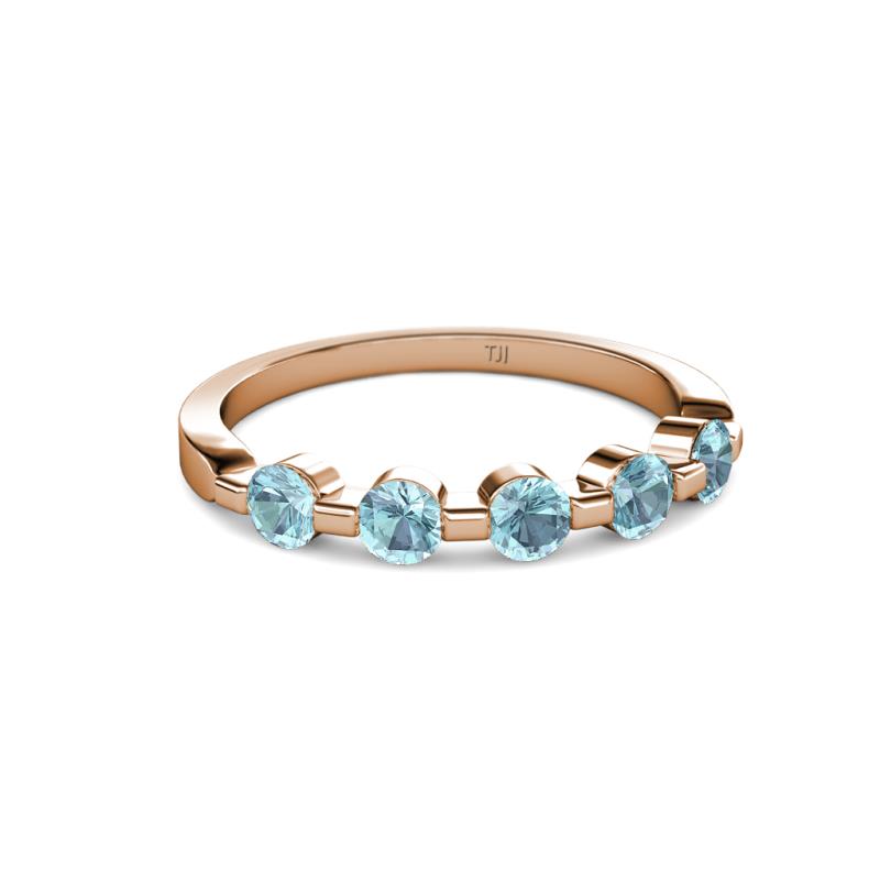 Round Aquamarine 3/4 ctw 5 Stone Bar Set Womens Wedding Band Stackable 10K Rose Gold More Details ...