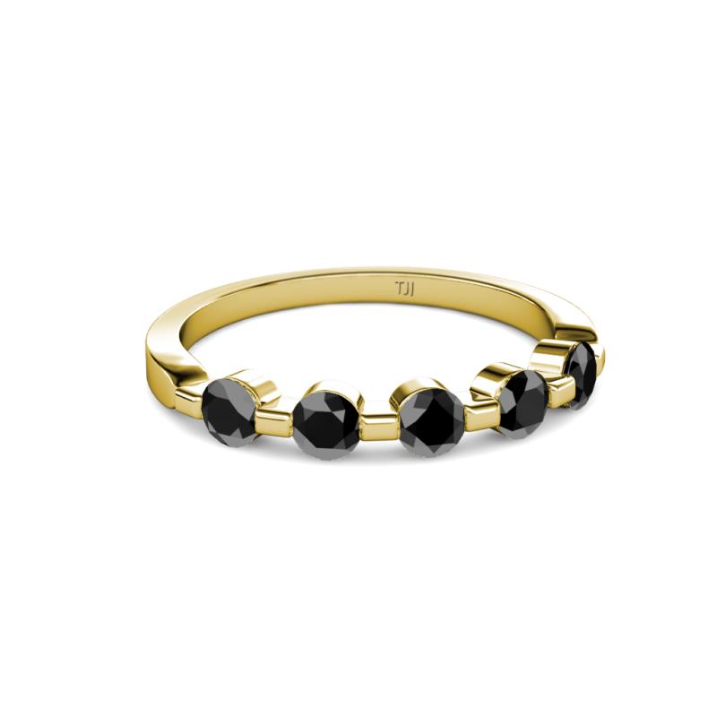 Round Black Diamond 3/4 ctw 5 Stone Bar Set Womens Wedding Band Stackable 10K Yellow Gold More Details ...