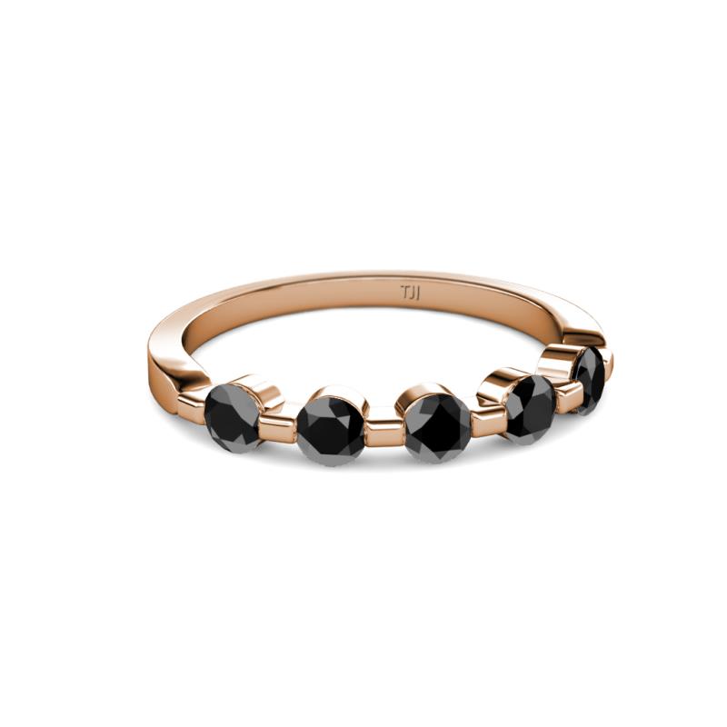 Round Black Diamond 3/4 ctw 5 Stone Bar Set Womens Wedding Band Stackable 10K Rose Gold More Details ...