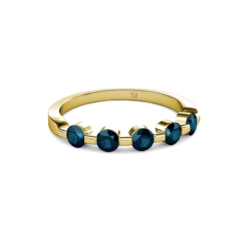Round Blue Diamond 3/4 ctw 5 Stone Bar Set Womens Wedding Band Stackable 18K Yellow Gold More Details ...