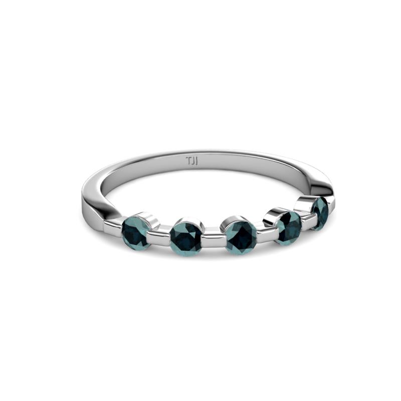 Round Blue Diamond 1/2 ctw 5 Stone Bar Set Womens Wedding Band Stackable 10K White Gold More Details ...