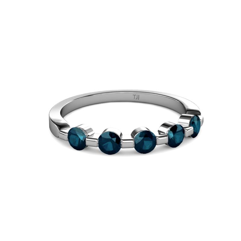 Round Blue Diamond 3/4 ctw 5 Stone Bar Set Womens Wedding Band Stackable 10K White Gold More Details ...