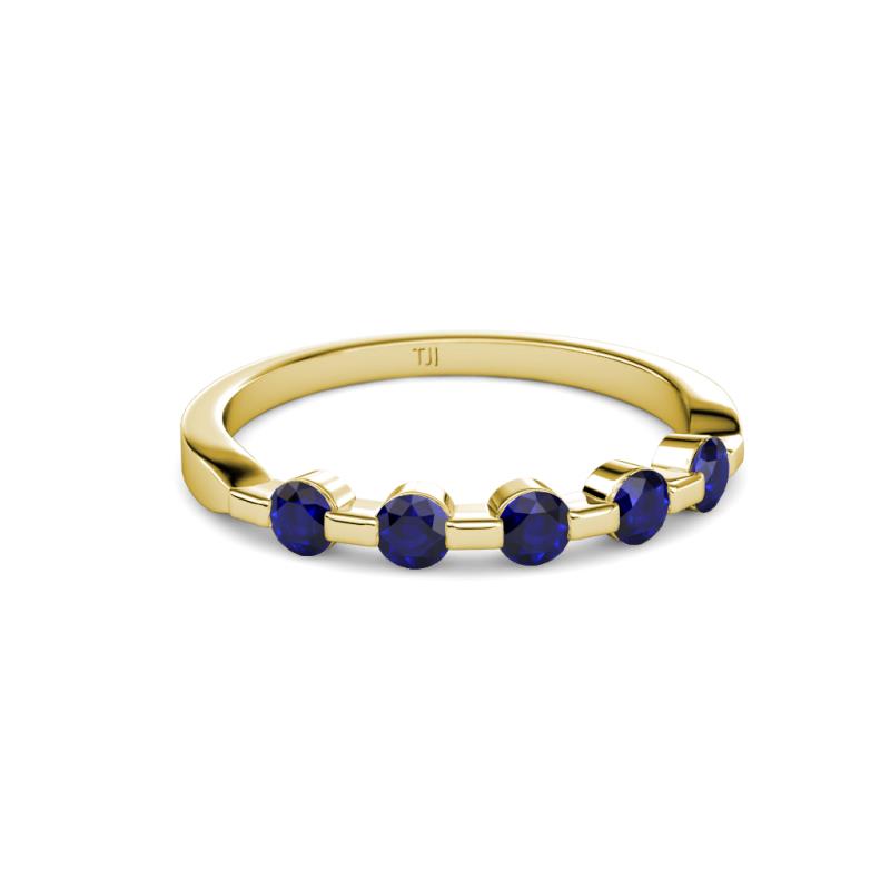 Round Blue Sapphire 1/2 ctw 5 Stone Bar Set Womens Wedding Band Stackable 10K Yellow Gold More Details ...