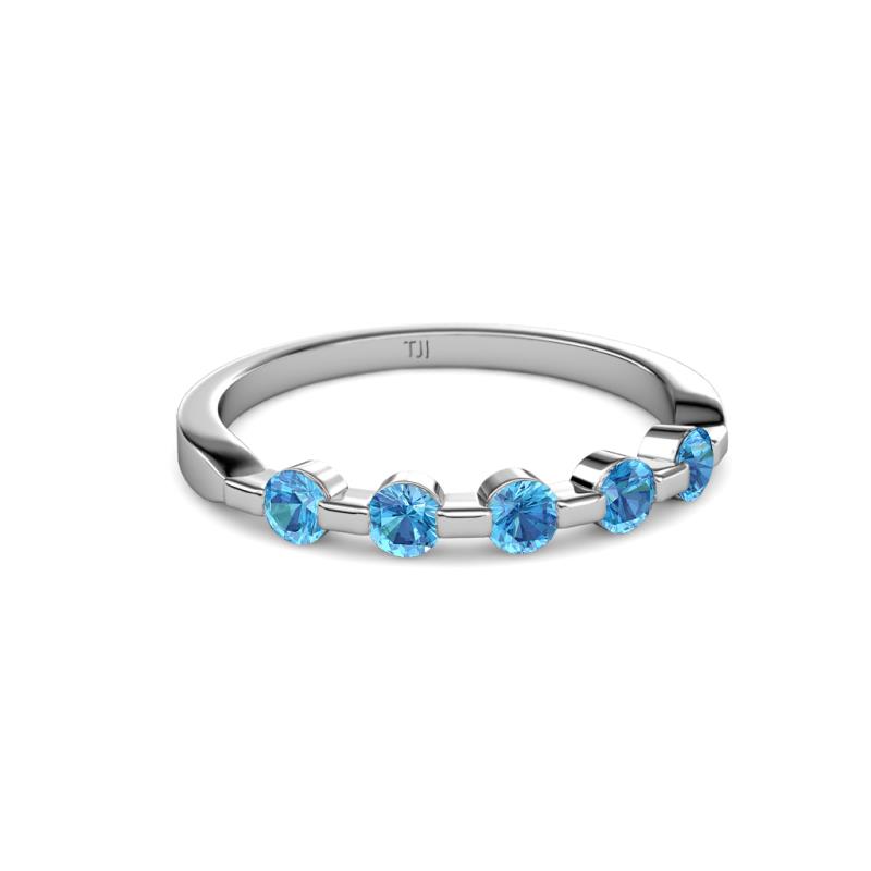 Round Blue Topaz 1/2 ctw 5 Stone Bar Set Womens Wedding Band Stackable 18K White Gold More Details ...