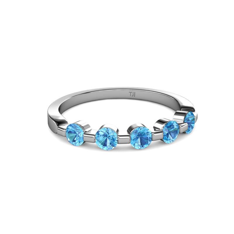 Round Blue Topaz 3/4 ctw 5 Stone Bar Set Womens Wedding Band Stackable 10K White Gold More Details ...