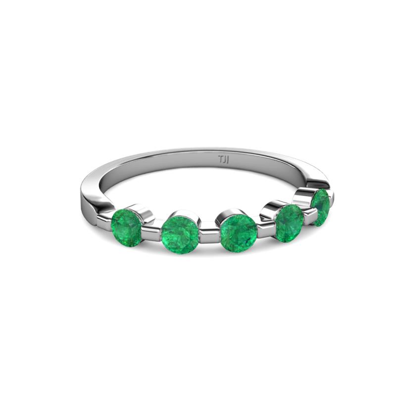 Round Emerald 3/4 ctw 5 Stone Bar Set Womens Wedding Band Stackable 14K White Gold More Details ...