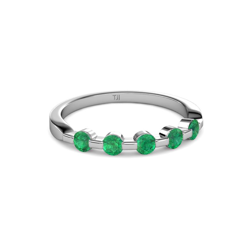 Round Emerald 3/8 ctw 5 Stone Bar Set Womens Wedding Band Stackable 10K White Gold More Details ...