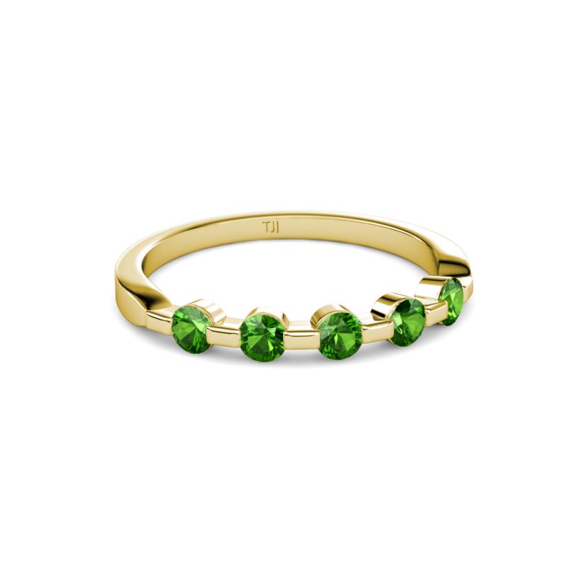 Round Green Garnet 1/2 ctw 5 Stone Bar Set Womens Wedding Band Stackable 10K Yellow Gold More Details ...