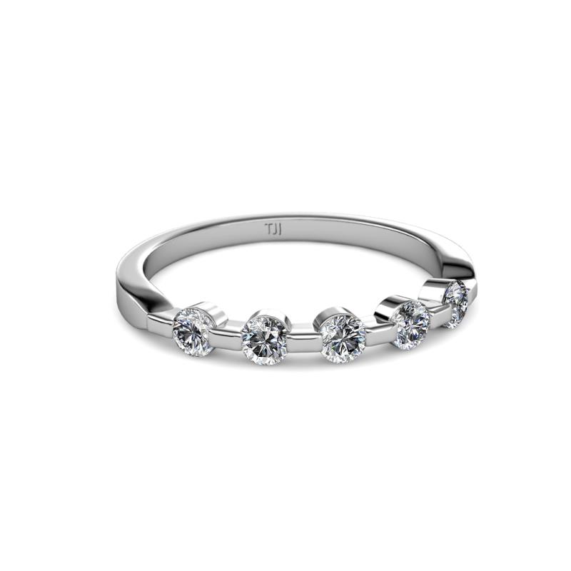 Round Lab Grown Diamond 1/2 ctw 5 Stone Bar Set Womens Wedding Band Stackable 10K White Gold More Details ...