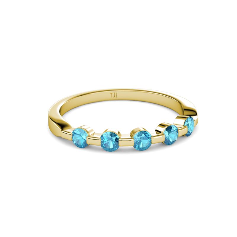 Round London Blue Topaz 1/2 ctw 5 Stone Bar Set Womens Wedding Band Stackable 18K Yellow Gold More Details ...