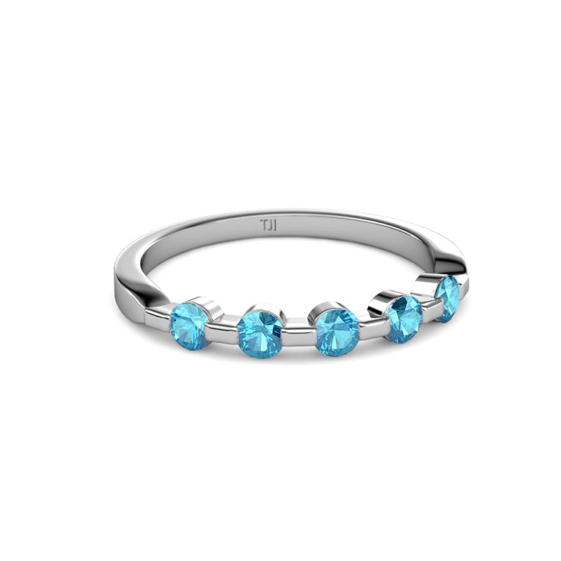Round London Blue Topaz 1/2 ctw 5 Stone Bar Set Womens Wedding Band Stackable 10K White Gold More Details ...