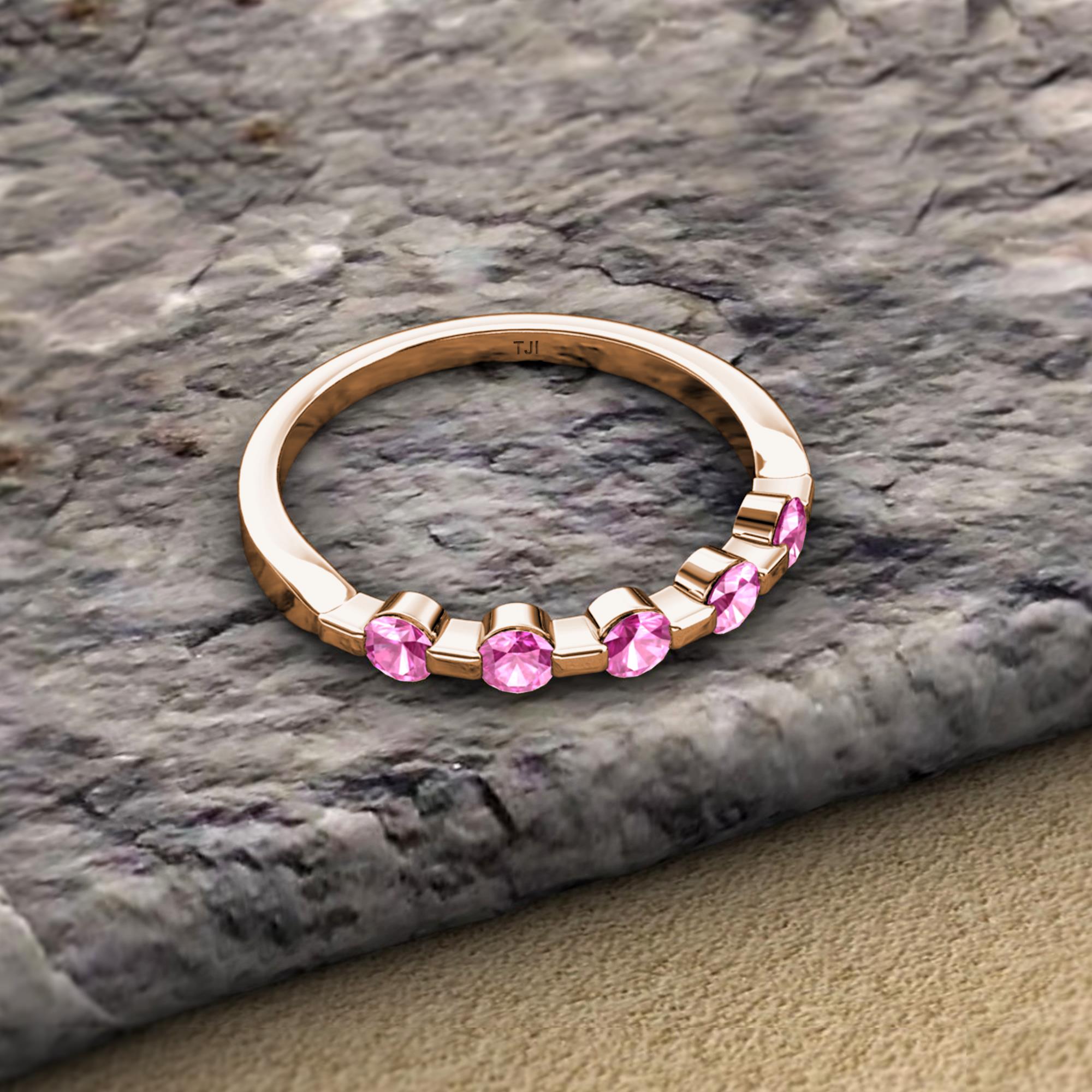 Round Pink Sapphire 1/2 ctw 5 Stone Bar Set Womens Wedding Band Stackable 10K Rose Gold More Details ...