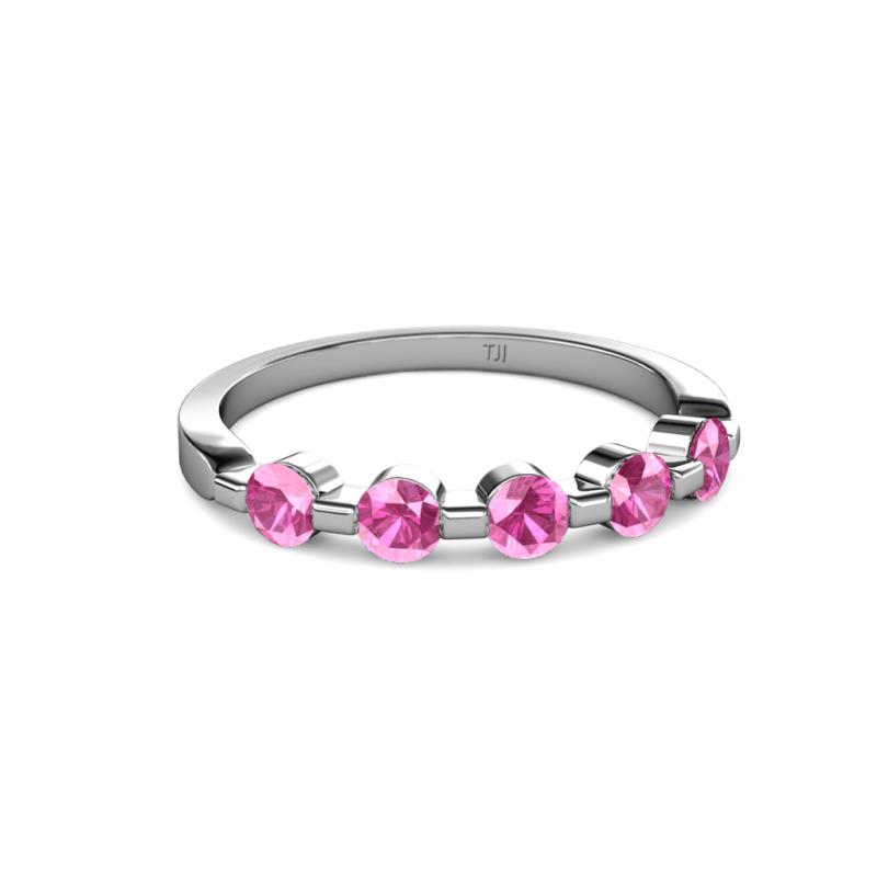 Round Pink Sapphire 3/4 ctw 5 Stone Bar Set Womens Wedding Band Stackable 10K White Gold More Details ...