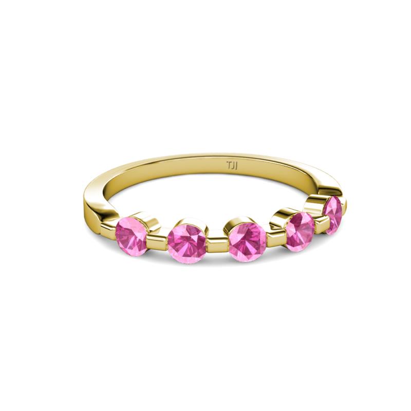 Round Pink Sapphire 3/4 ctw 5 Stone Bar Set Womens Wedding Band Stackable 10K Yellow Gold More Details ...
